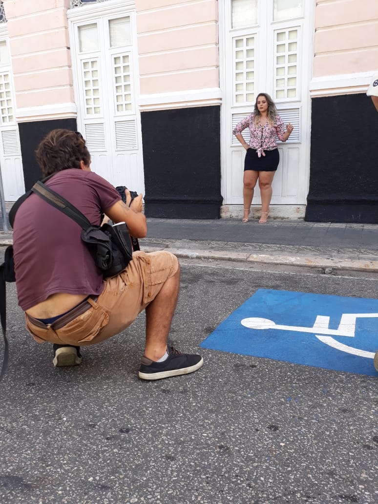 Minha ideia foi fazer fotos em diversos pontos da cidade, mostrando o encanto da arquitetura colonial dos centros urbanos e a beleza estonteante de uma mulher bem resolvida.