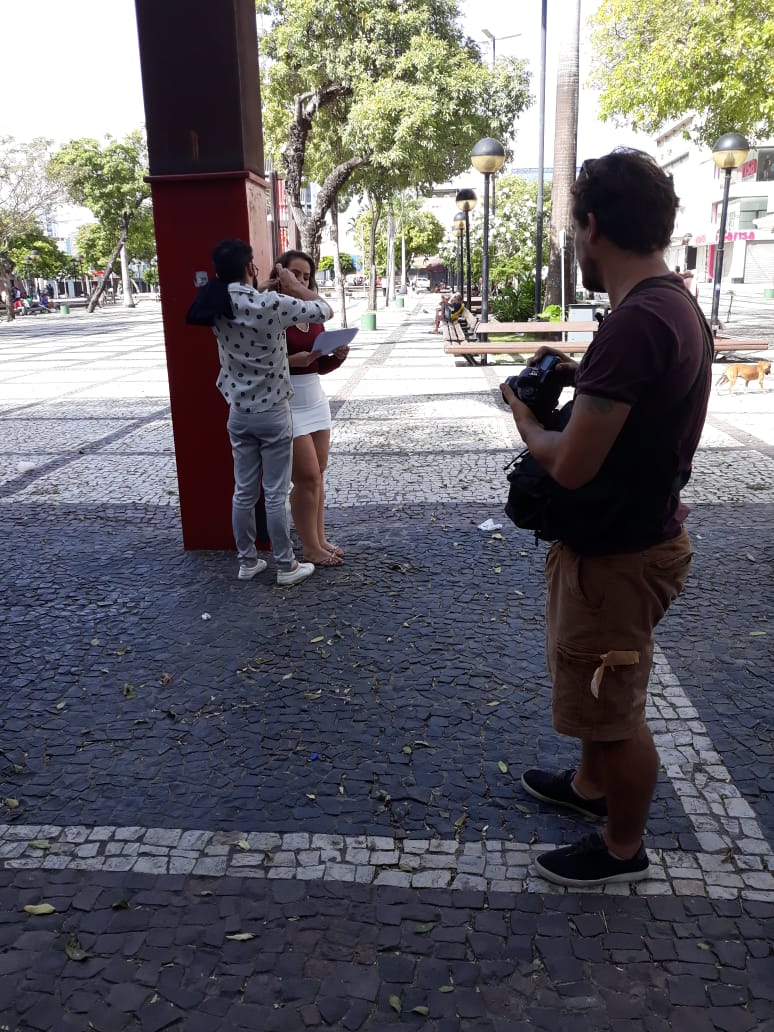 Estas foram algumas das locações escolhidas. Decidi colocá-la em cima de um edifício, que mostrava boa parte da capital cearense. O objetivo foi transmitir a ideia de que a mulher também está no controle de tudo, que ela está no topo e que isso não pertence somente ao universo masculino. Portanto gostaria de agradecer ao Edifício Palácio Progresso, que nos disponibilizou o terraço para a execução das fotos.